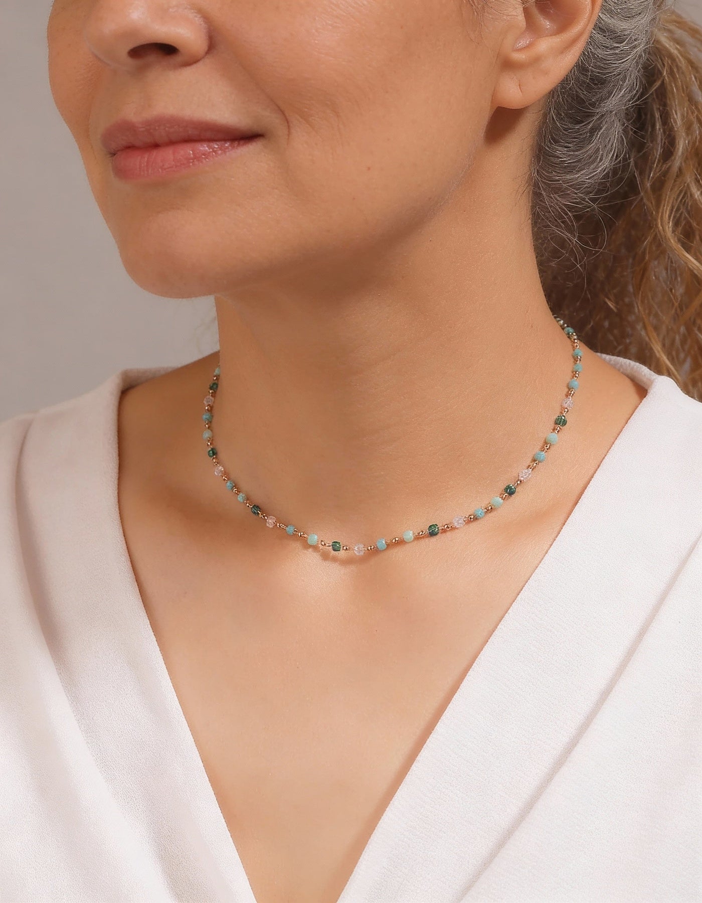Gold-Plated Multicoloured Stone Necklace