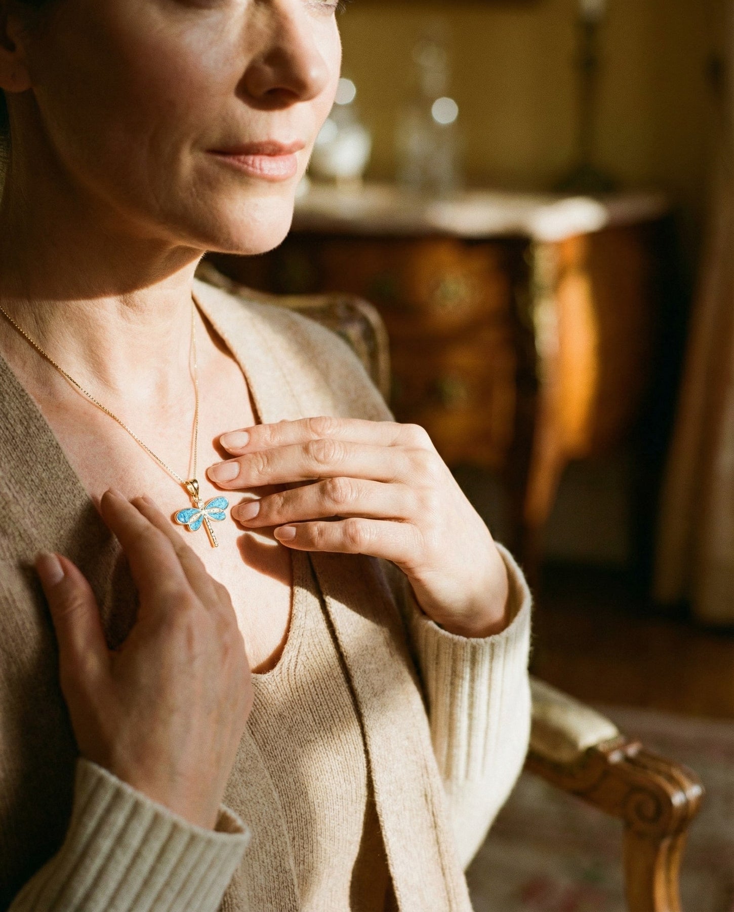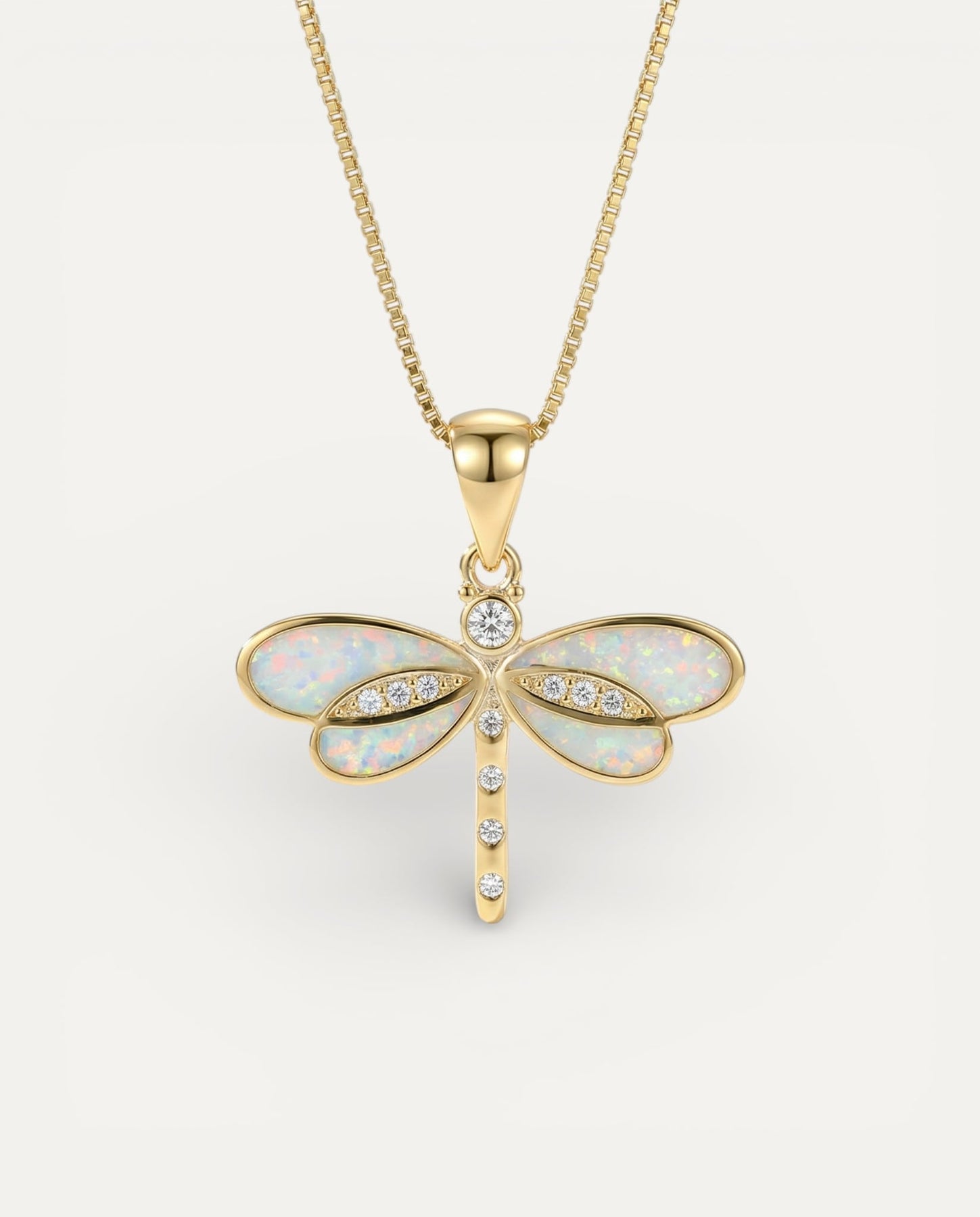 Dragonfly Necklace in Gold with Opal