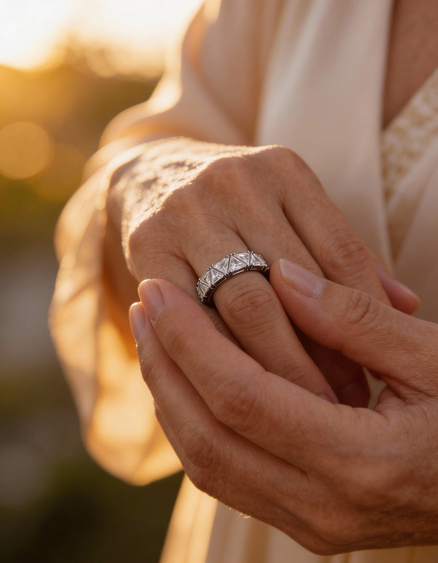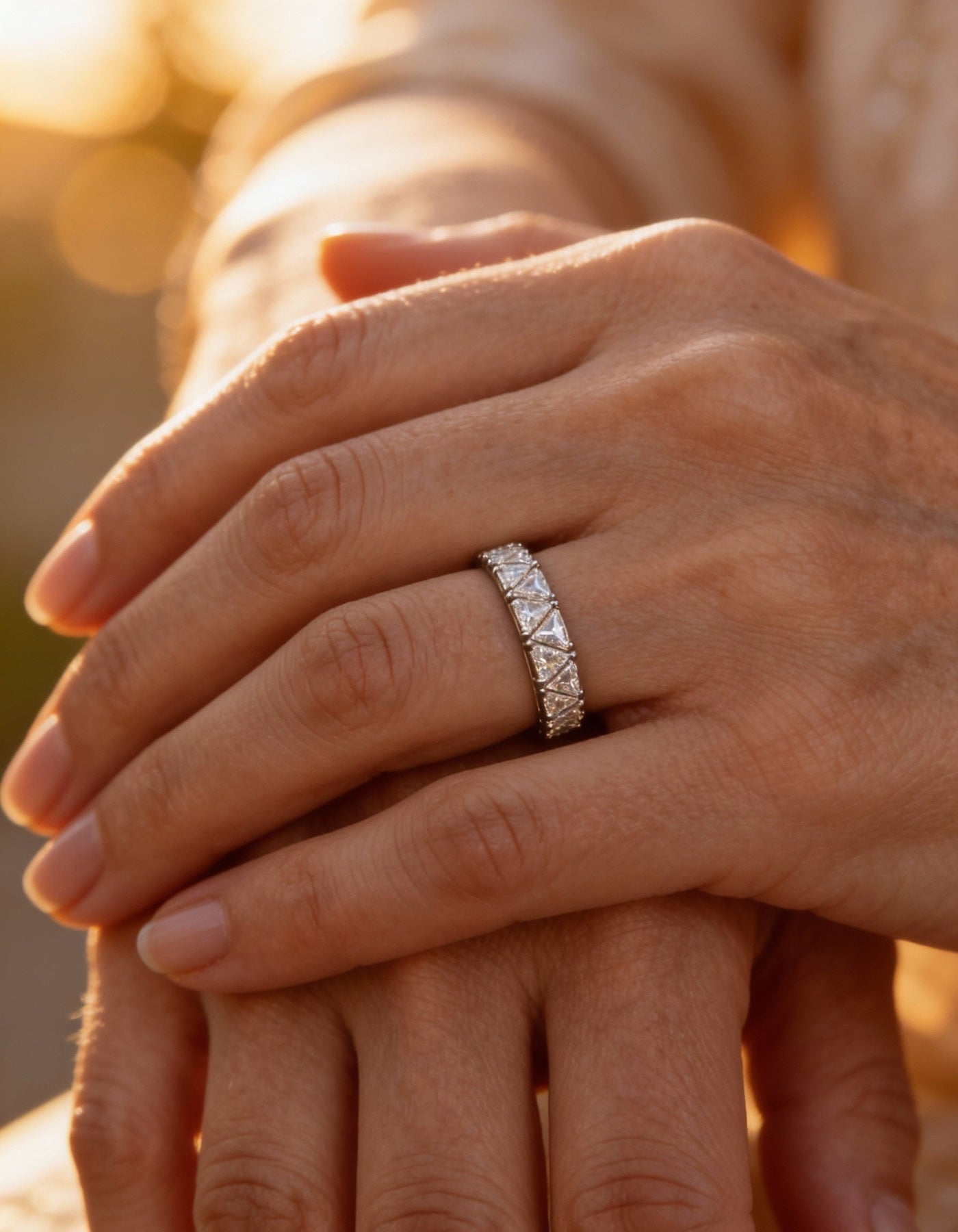 Vintage Silver Triangular Eternity Stone Ring